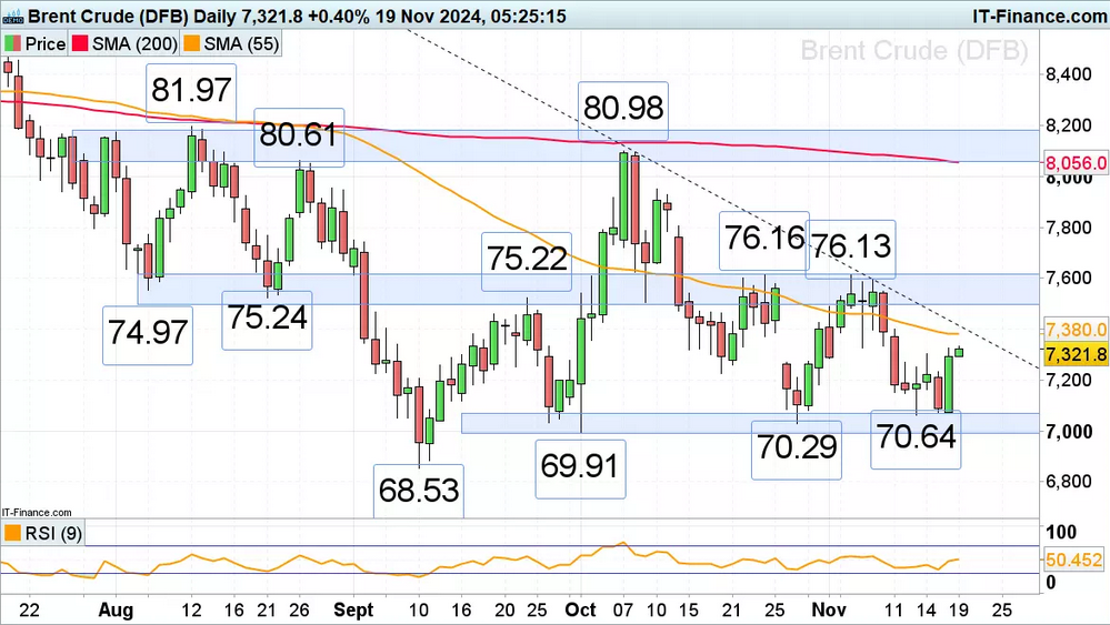 ​The Brent crude oil front month futures price has swiftly risen by over 3% on Monday from key technical support at 70.64-to-69.91 amid mounting supply concerns. A production outage due to an onshore power cut at Norway’s Johan Sverdrup oilfield, Western Europe’s largest, combined with escalating tensions in the Russia-Ukraine war as President Biden's permits Ukraine to use US long range missile which can strike deep into Russia have driven the oil price higher.